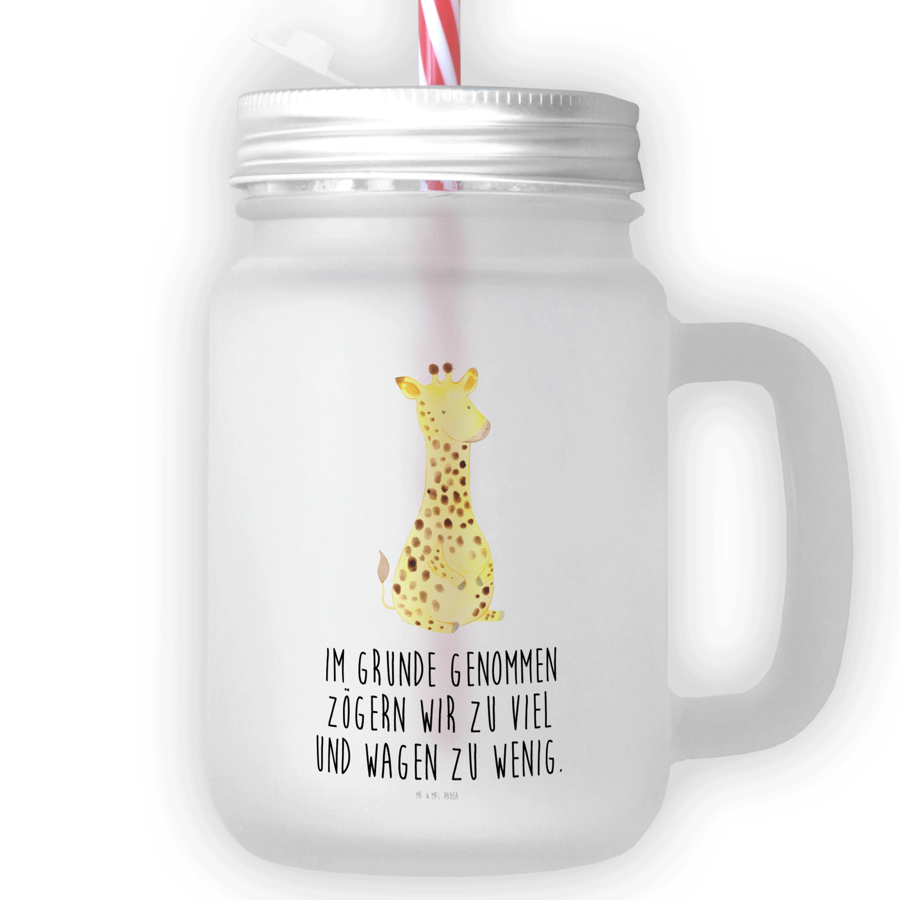 Entdecke das Zauberhafte im Alltäglichen mit dem Trinkglas Mason Jar von Mr. & Mrs. Panda. Dieses hochwertige Glas, mit einer edlen, matten Oberfläche und satiniertem dickwandigen Premiumglas gefertigt, bringt Freude in jeden Schluck. Mit den Maßen von 130 mm x 80 mm und einem Durchmesser von 80 mm, gepaart mit einem Gewicht von 415 g, liegt es perfekt in der Hand. Der silberfarbene Metalldeckel mit Schraubverschluss und ein gestreifter Mehrweg-Trinkhalm aus Kunststoff machen es zum idealen Begleiter für alle Sommerpartys. Ob für Cocktails, frisch gepresste Limonaden oder kühle Eistees – jedes Getränk wird durch das liebliche Design von Mr. & Mrs. Panda mit Sprüchen und niedlichen Motiven besonders hervorgehoben. Die Kombination aus Funktionalität und Design macht es zum Must-Have für alle, die das Besondere lieben und Wert auf Details legen.