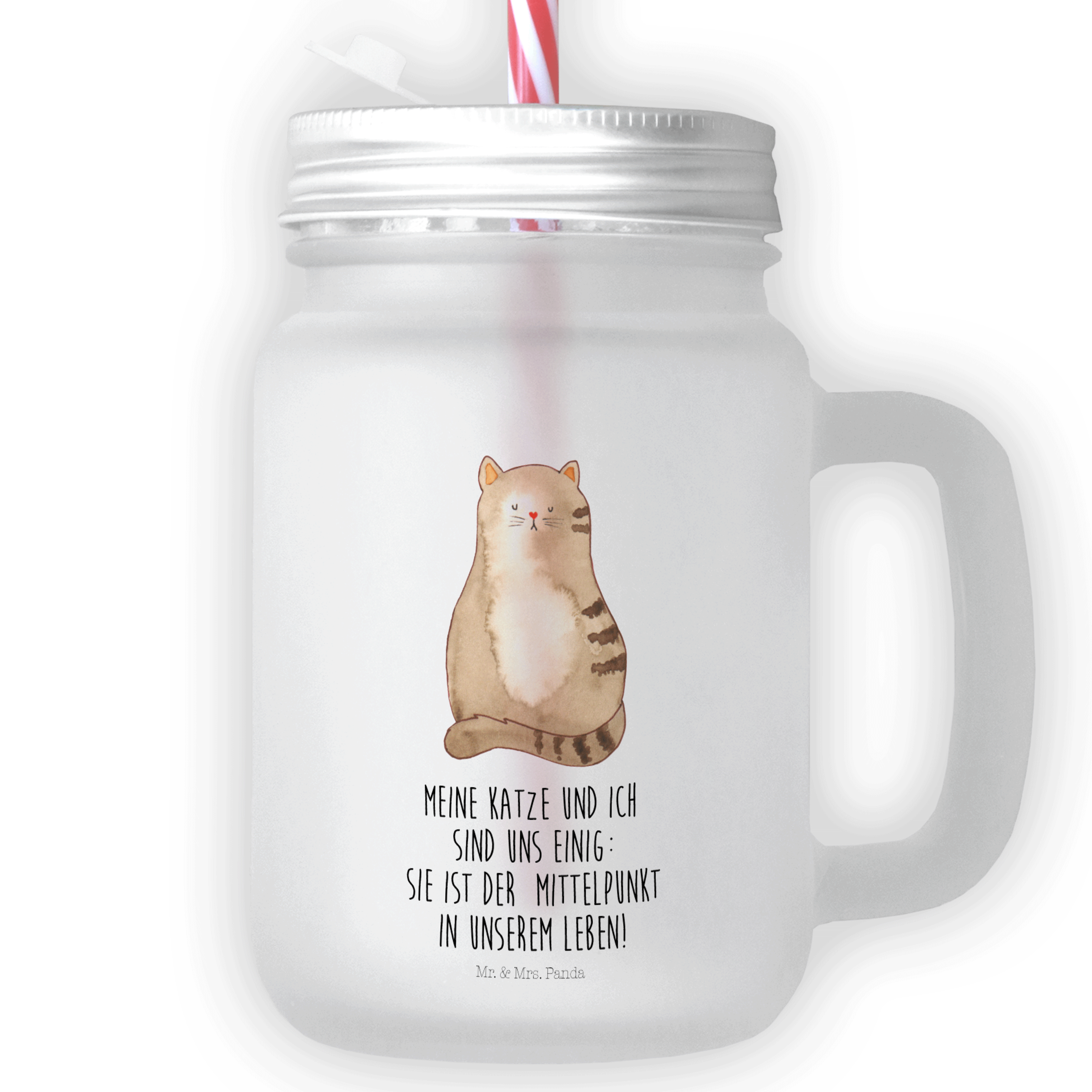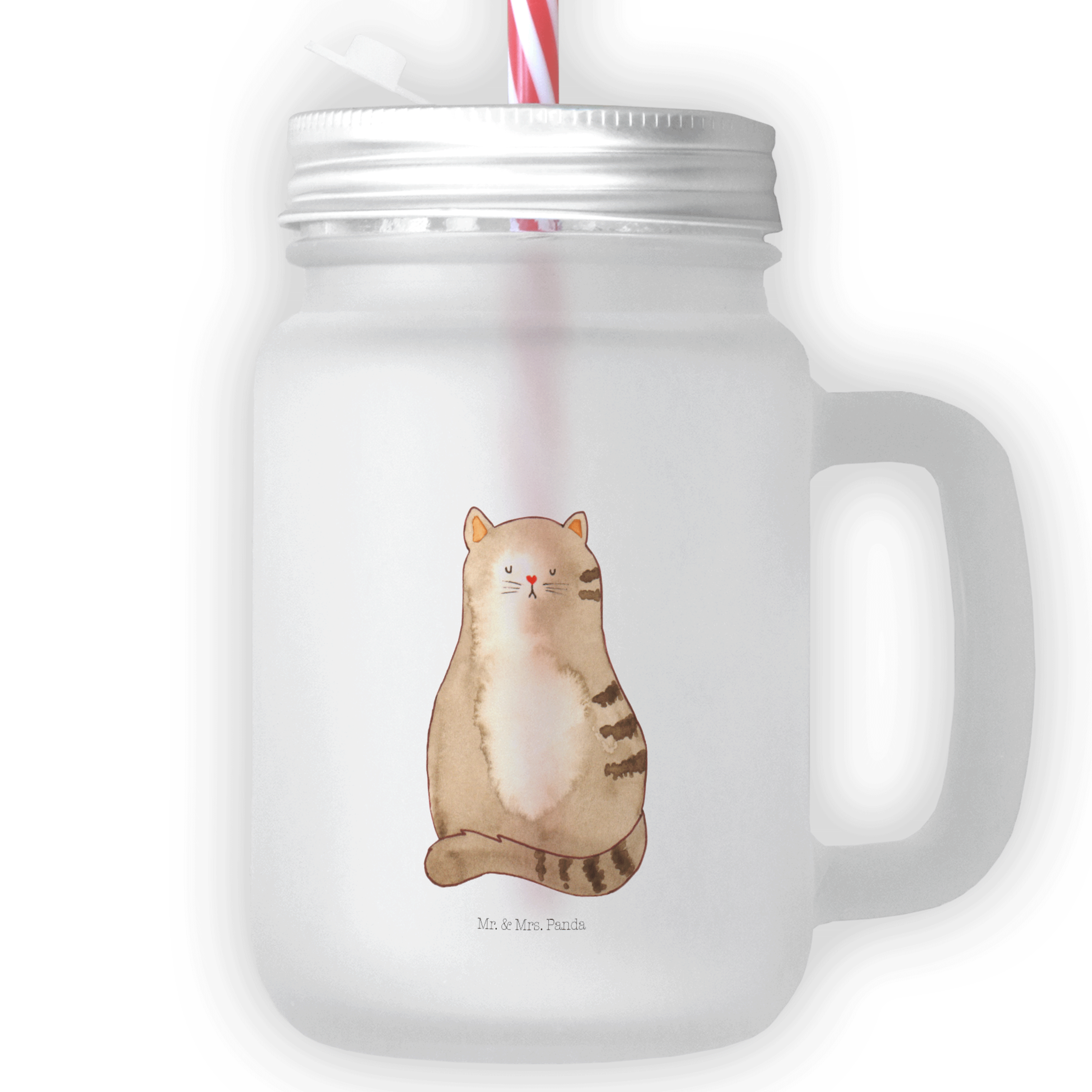 Das Mr. & Mrs. Panda Trinkglas Mason Jar verbindet Retro-Glamour mit moderner Funktionalität. Mit seinen Dimensionen von 130 mm x 80 mm, einem Durchmesser von 80 mm und einem soliden Gewicht von 415 g, ist dieses Glas ein echter Blickfang. Es ist ideal geeignet, um daraus selbstgemachte Limonaden, spritzige Cocktails oder erfrischende Eistees zu schlürfen. Aus satiniertem Premium-Glas gefertigt und mit einem silberfarbenen Metalldeckel versehen, ist es nicht nur robust und langlebig, sondern auch ein echtes Design-Statement. Der beigelegte, gestreifte Mehrweg-Trinkhalm aus Kunststoff macht das Genuss-Erlebnis komplett. Ein Glas, das in seiner Funktionalität genauso überzeugt wie durch sein Design.