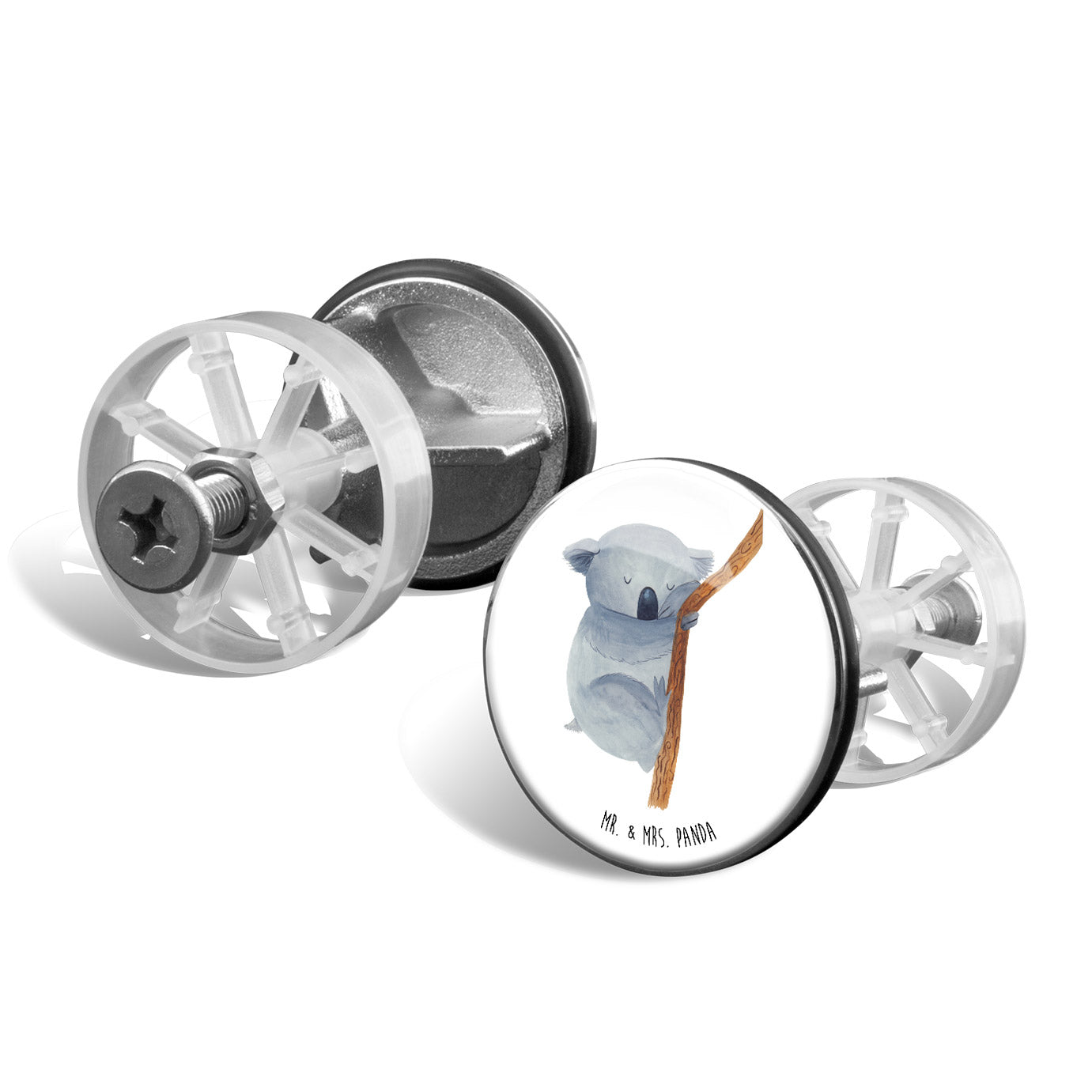 Ergänze Dein Badezimmer um ein dekoratives und nützliches Accessoire mit dem Mr. & Mrs. Panda Waschbecken Stöpsel. Dieser hochwertige Stöpsel, 72 mm in der Höhe und 40 mm im Durchmesser, aus verchromtem Messing hergestellt, kombiniert Funktionalität mit Design. Mit einem speziellen Haarfangsieb ausgestattet, sorgt er dafür, dass der Abfluss immer schön sauber bleibt. Seine Höhe lässt sich problemlos anpassen, daher passt er perfekt in jedes Waschbecken. Seine robuste Beschichtung gewährleistet eine lange Lebensdauer und macht ihn zum idealen Begleiter im täglichen Gebrauch. Einfache Reinigung unter lauwarmen Wasser ohne Reinigungsmittel macht ihn zusätzlich attraktiv.