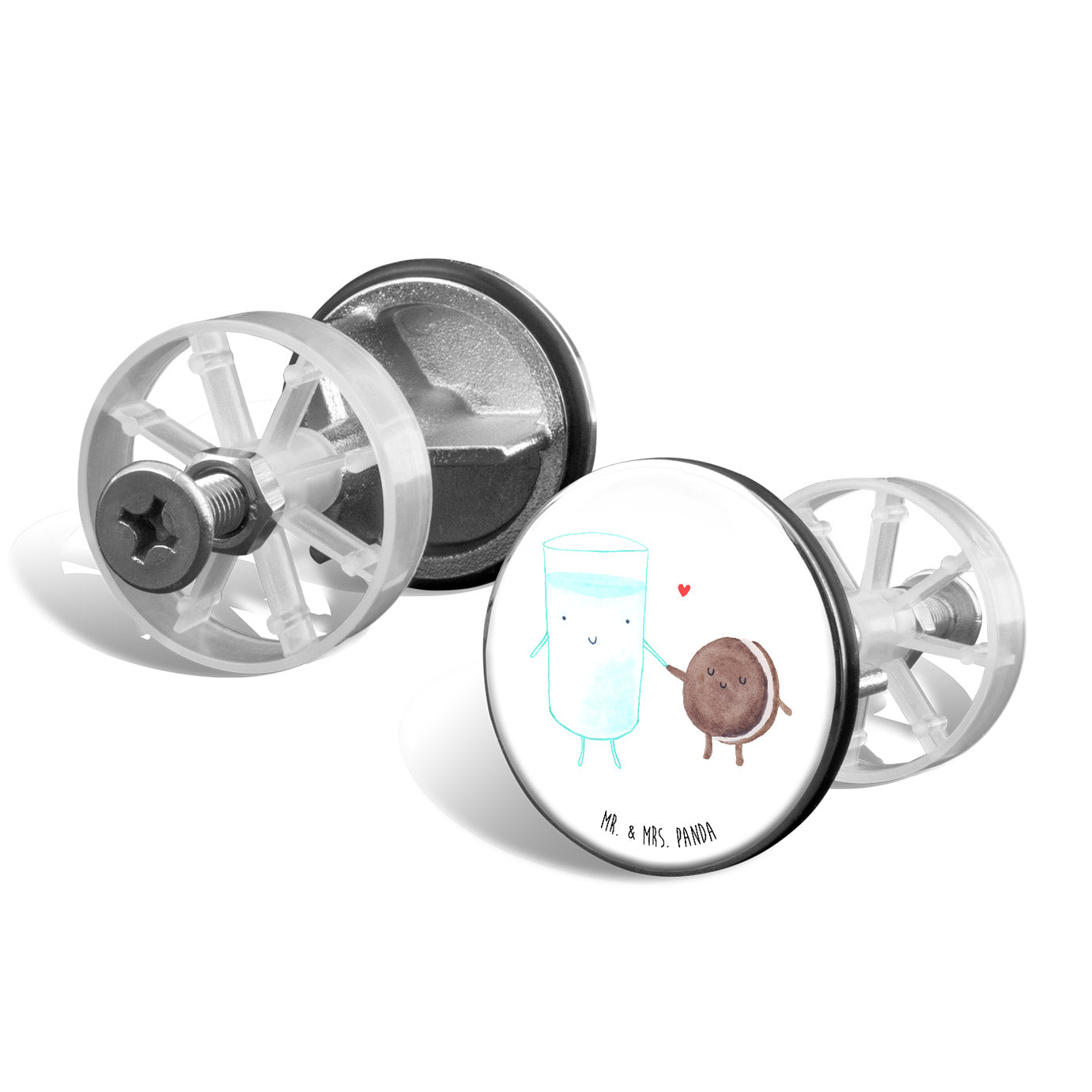 Ergänze Dein Badezimmer um ein dekoratives und nützliches Accessoire mit dem Mr. & Mrs. Panda Waschbecken Stöpsel. Dieser hochwertige Stöpsel, 72 mm in der Höhe und 40 mm im Durchmesser, aus verchromtem Messing hergestellt, kombiniert Funktionalität mit Design. Mit einem speziellen Haarfangsieb ausgestattet, sorgt er dafür, dass der Abfluss immer schön sauber bleibt. Seine Höhe lässt sich problemlos anpassen, daher passt er perfekt in jedes Waschbecken. Seine robuste Beschichtung gewährleistet eine lange Lebensdauer und macht ihn zum idealen Begleiter im täglichen Gebrauch. Einfache Reinigung unter lauwarmen Wasser ohne Reinigungsmittel macht ihn zusätzlich attraktiv.