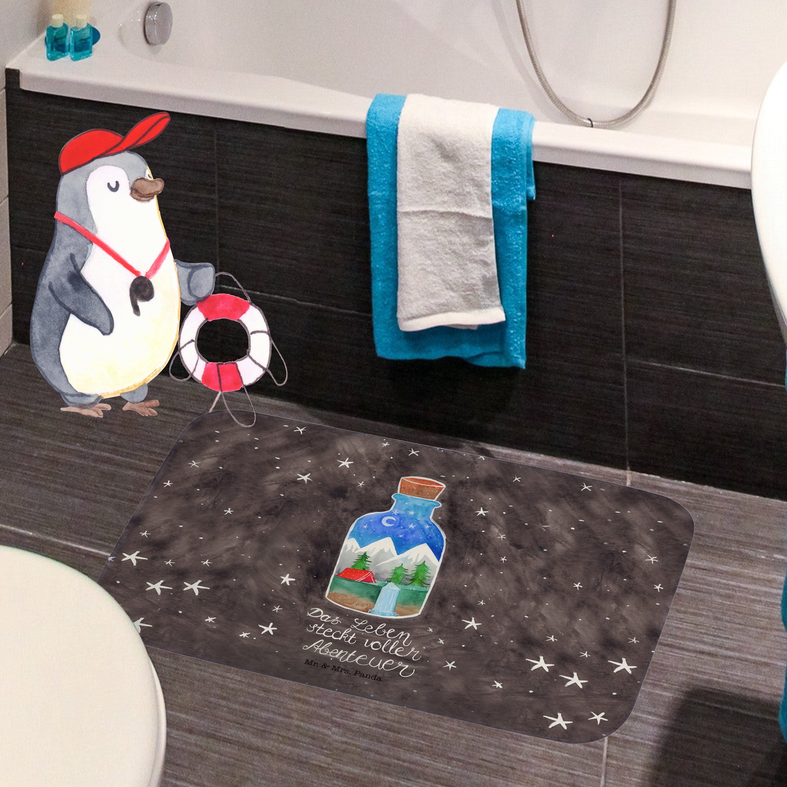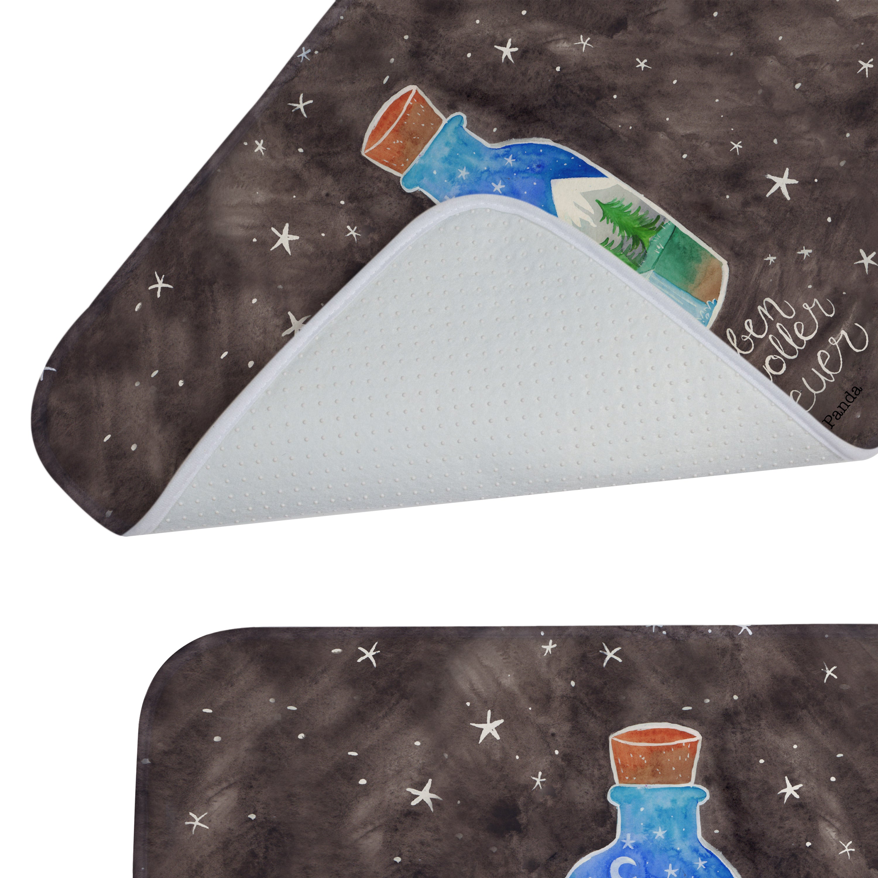 Mach dein Badezimmer zur Wohlfühloase mit der Badezimmermatte von Mr. & Mrs. Panda. 590 mm x 400 mm groß, bietet sie genug Fläche, um nasse Füße sicher und komfortabel abzutrocknen. Jedes Stück ist mit viel Liebe zum Detail gefertigt und verfügt über spritzige Designs, die sofort Stimmung in dein Bad bringen. Die Premium Kunstfaser ist nicht nur besonders flauschig, sondern mit den Anti-Rutsch Gumminoppen auch hochgradig sicher. Leicht zu reinigen bei 30°C, ist dieser Duschvorleger zusätzlich ein Paradebeispiel an Bequemlichkeit und Style.