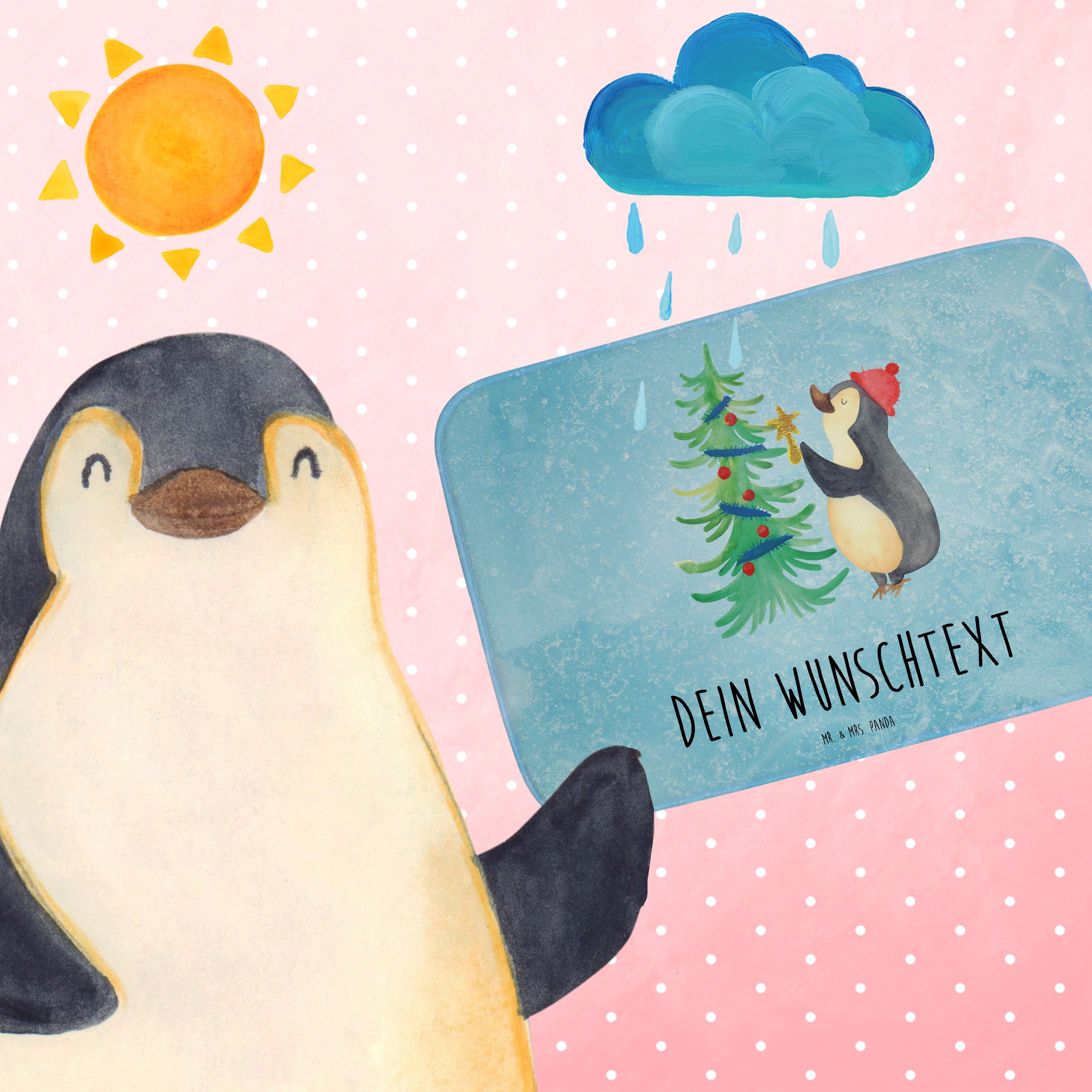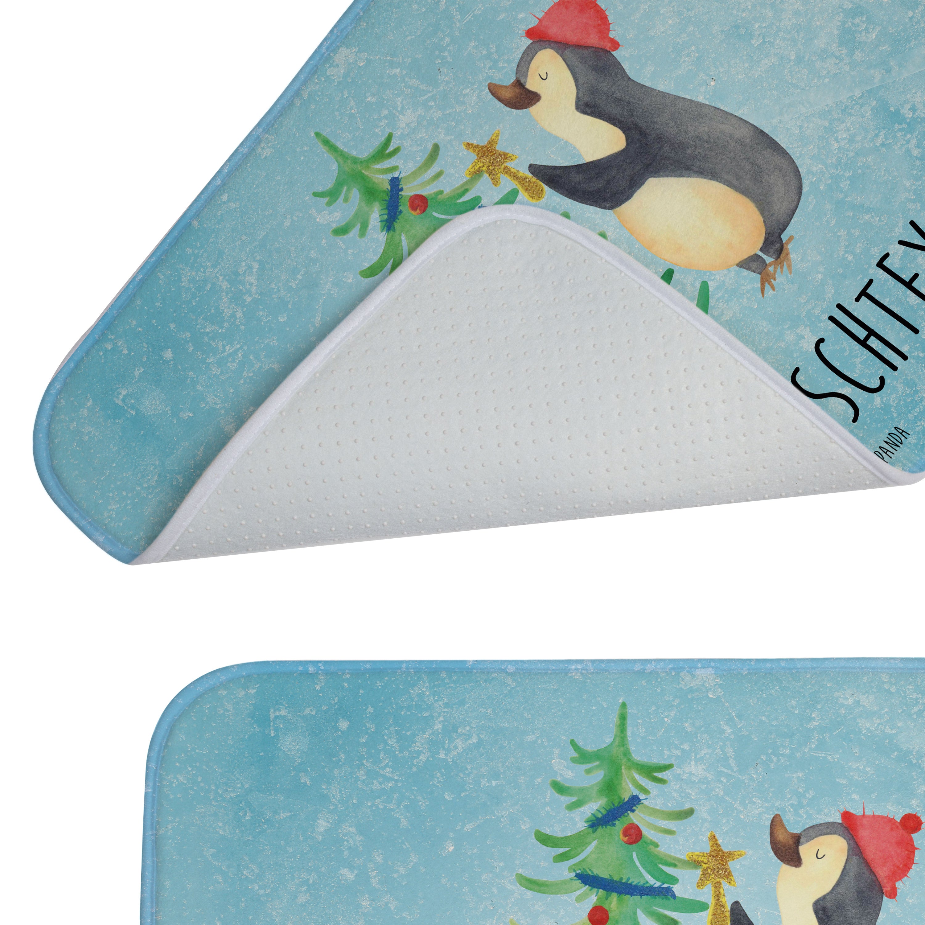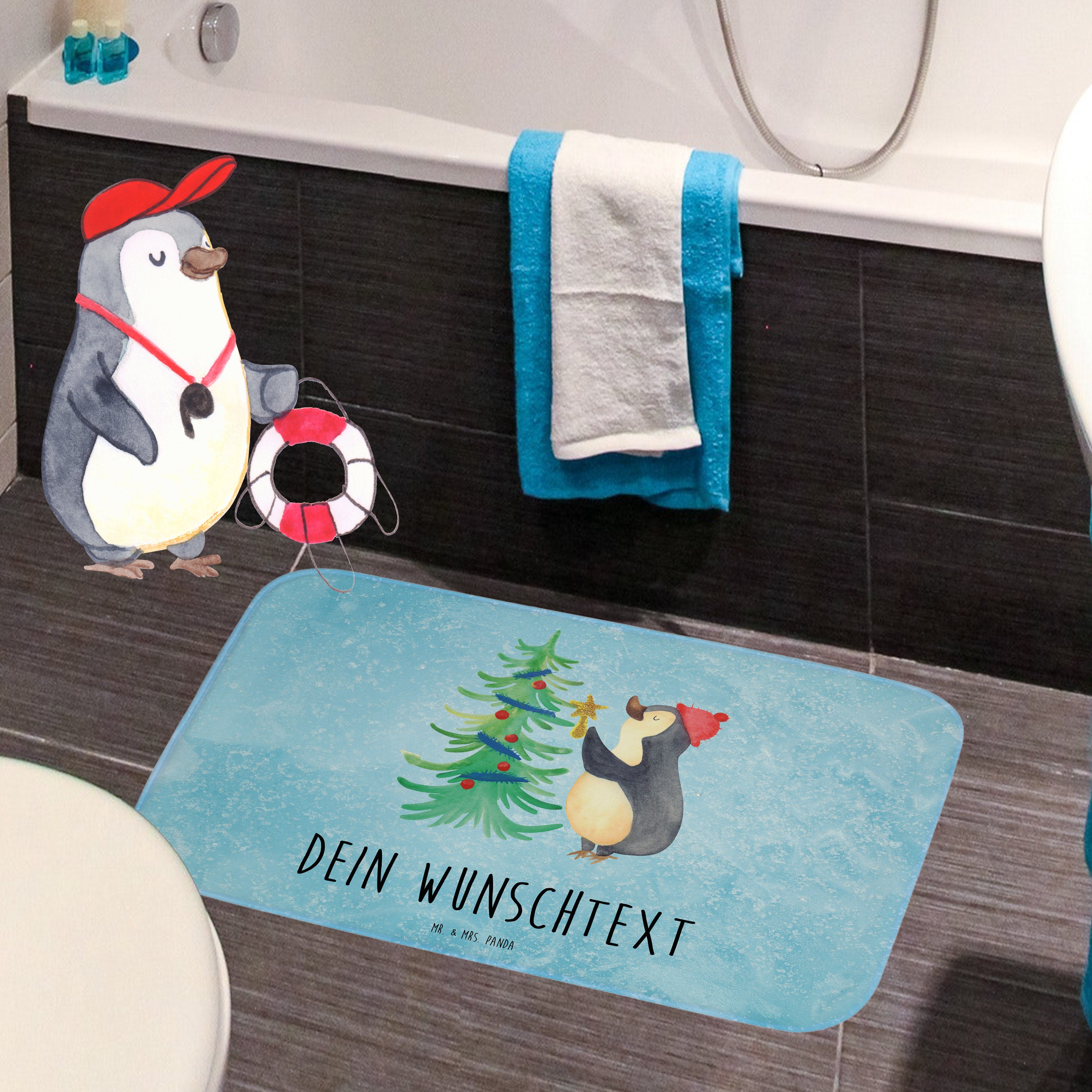 Personalisierter Badvorleger Pinguin Weihnachtsbaum